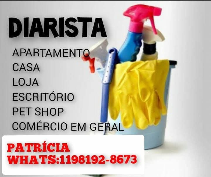 Patricia é diarista profissional com experiência comprovada e referências confiáveis. Realiza limpeza completa em casas, apartamentos e comércios, sempre com capricho, pontual